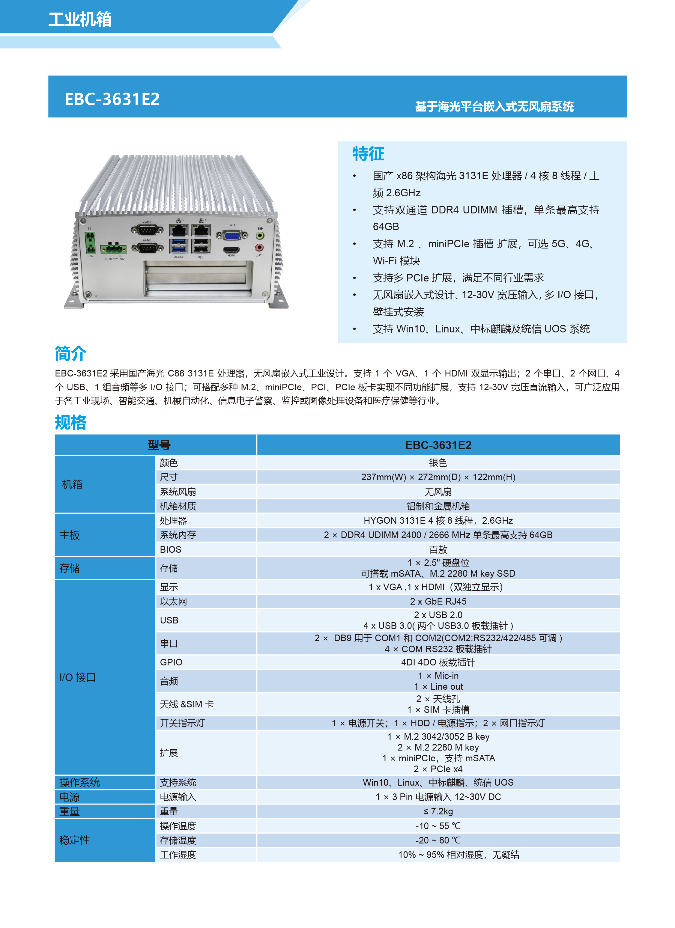 海光嵌入式无风扇工控机 | 3131E处理器